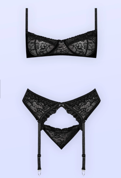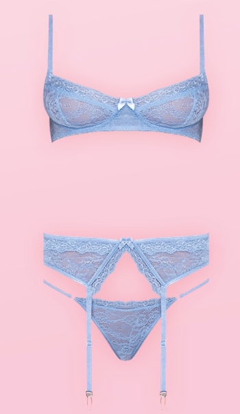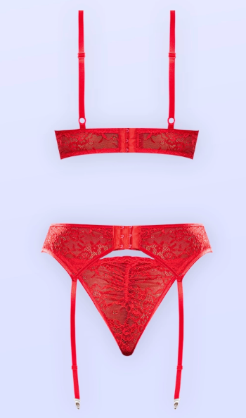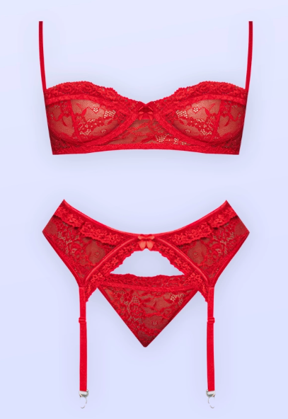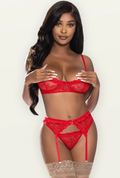 3-piece lingerie set: demi bra, garter, and lace tanga