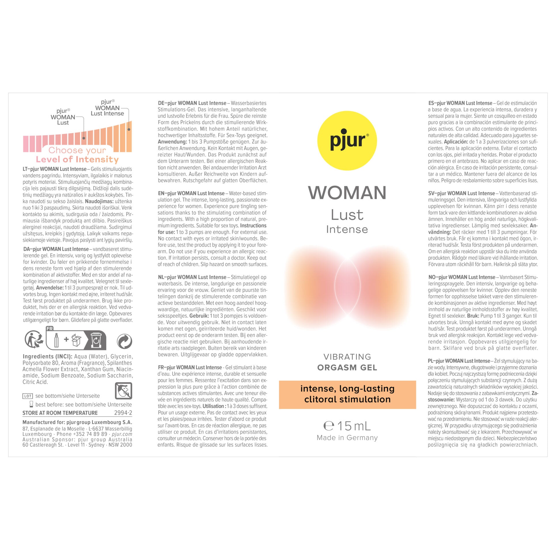 Unleash your deepest desires with Pjur Woman Lust—a sensual gel designed to awaken your body and ignite pure passion. This stimulating formula heightens sensitivity and invites you to take control of your orgasm, whether during foreplay, oral sex, or with your favorite erotic toy.