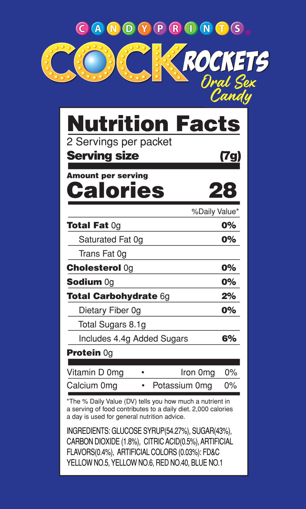 Blast off into pleasure with Cock Rockets, the popping candy that makes blow jobs out of this world! 🚀 Each delicious Strawberry-flavored candy explodes in your mouth with fizzy, tongue-tingling fun powered by Carbon Dioxide (CO₂). It’s sweet, sassy, and sure to leave you craving another launch!