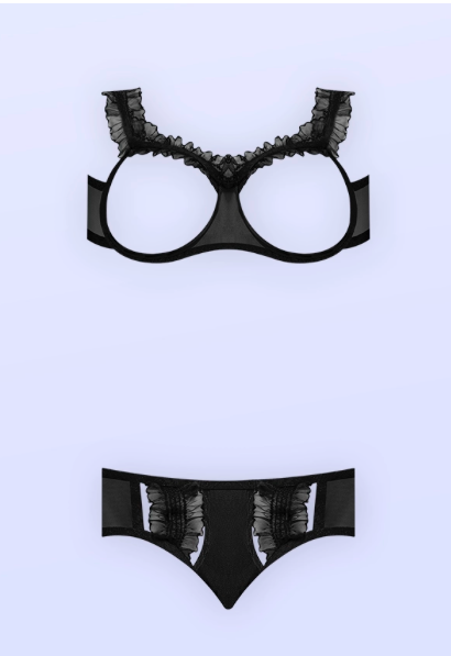 M252 Ruffled Open Cup Bralette & Cut Out Boy Short