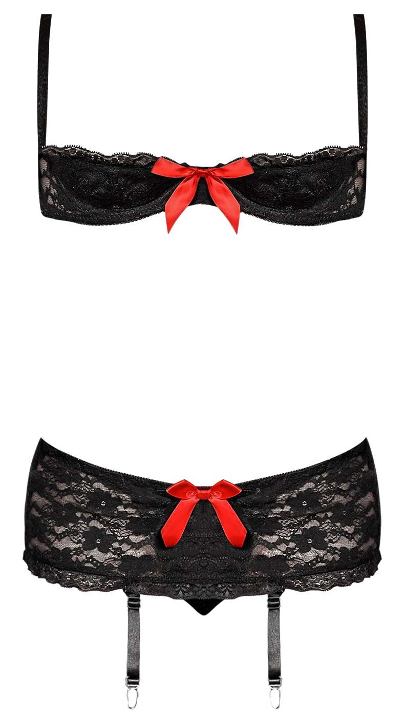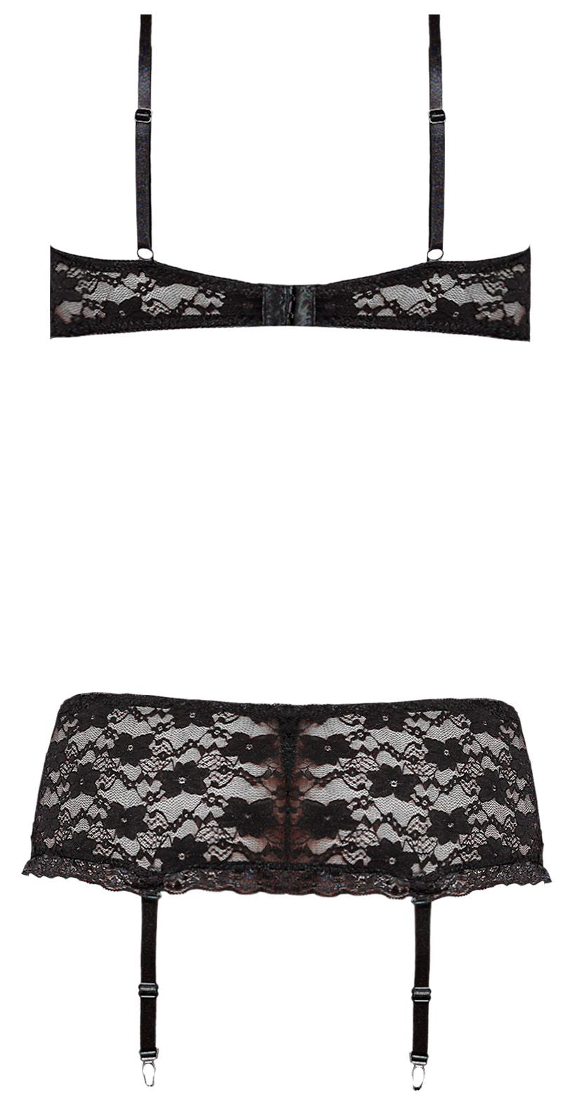 Set Includes: Lace bra, garter skirt, and matching G-string panty