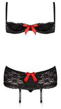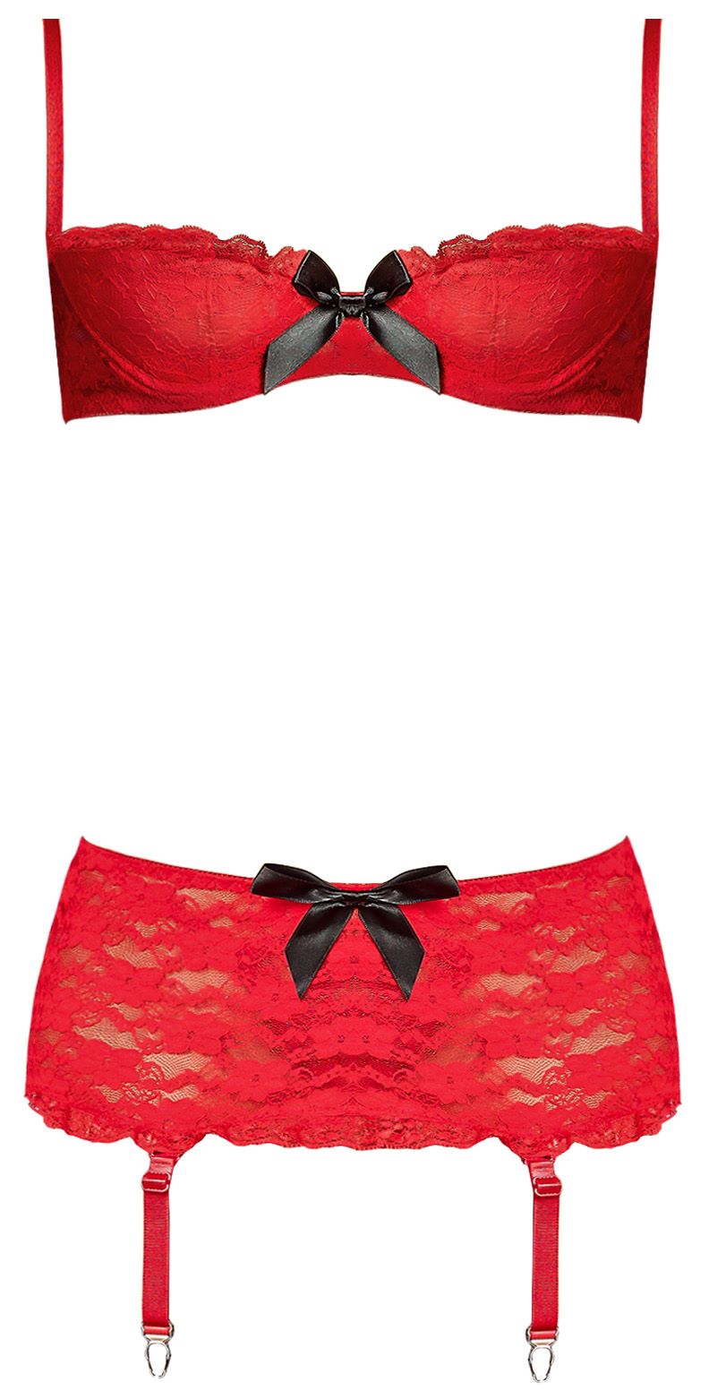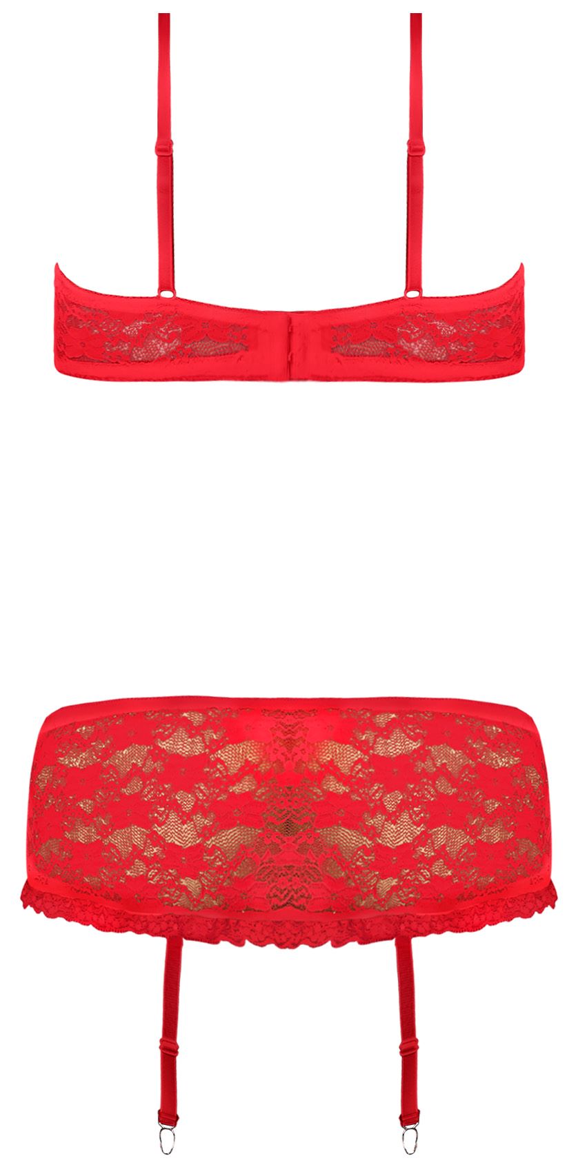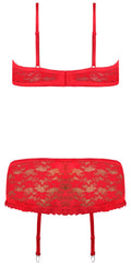 BRA GARTER SKIRT & G-STRING RED S/M (LUV LACE)