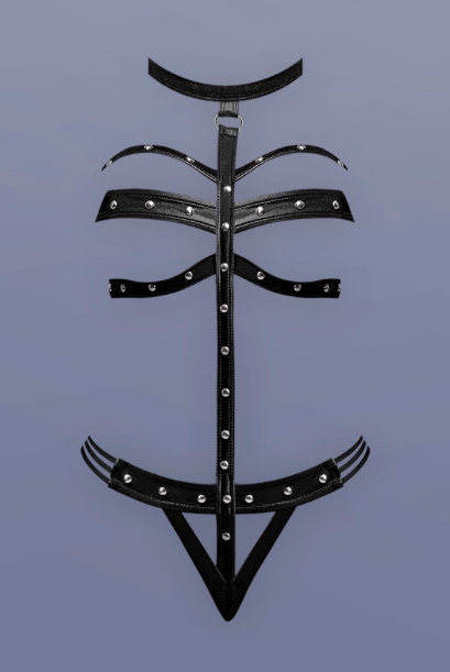 Featuring a strappy choker design and daring cutout panty, Chloe is as provocative as it is empowering. The hook & eye closures at the neck and back offer a secure, comfortable fit, while the attached panty keeps the look seamless and sultry.