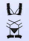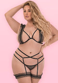 M253 Ruffled Bra, Stirrup Garter & Split Crotch Panty Set