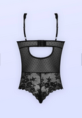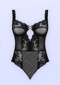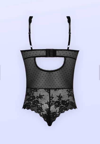 Allow your customers to unleash their passion and show off every curve with this irresistibly sexy Balconette Teddy 💋 This seductive piece is crafted with delicate lace and flocked velvet dots, designed to tease and tempt from every angle.